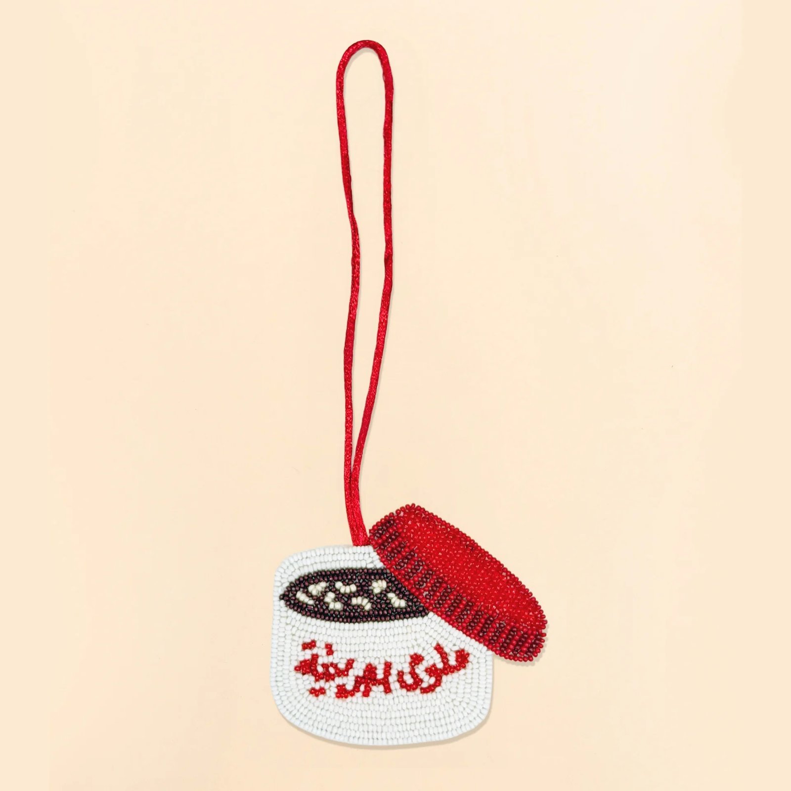 Unique beaded charm inspired by traditional Bahraini halwa. Detailed and vibrant, ideal for adding a cultural touch to bags, keys, or car mirrors.