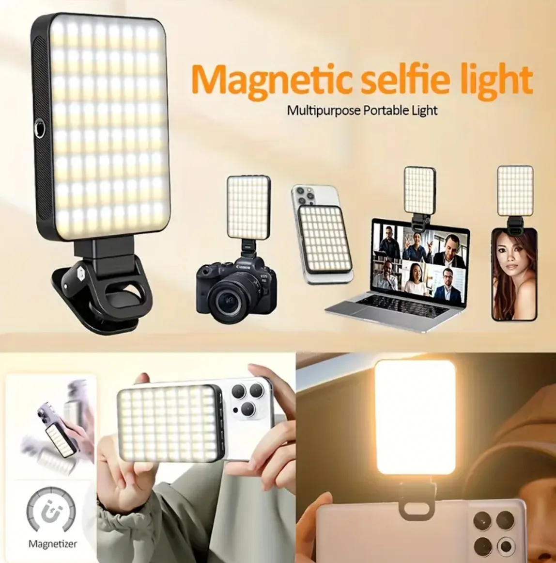 Glow on demand! BeautyGlow is a compact, magnetic selfie light with 3 brightness levels?perfect for flawless selfies, video calls, or makeup touch-ups.