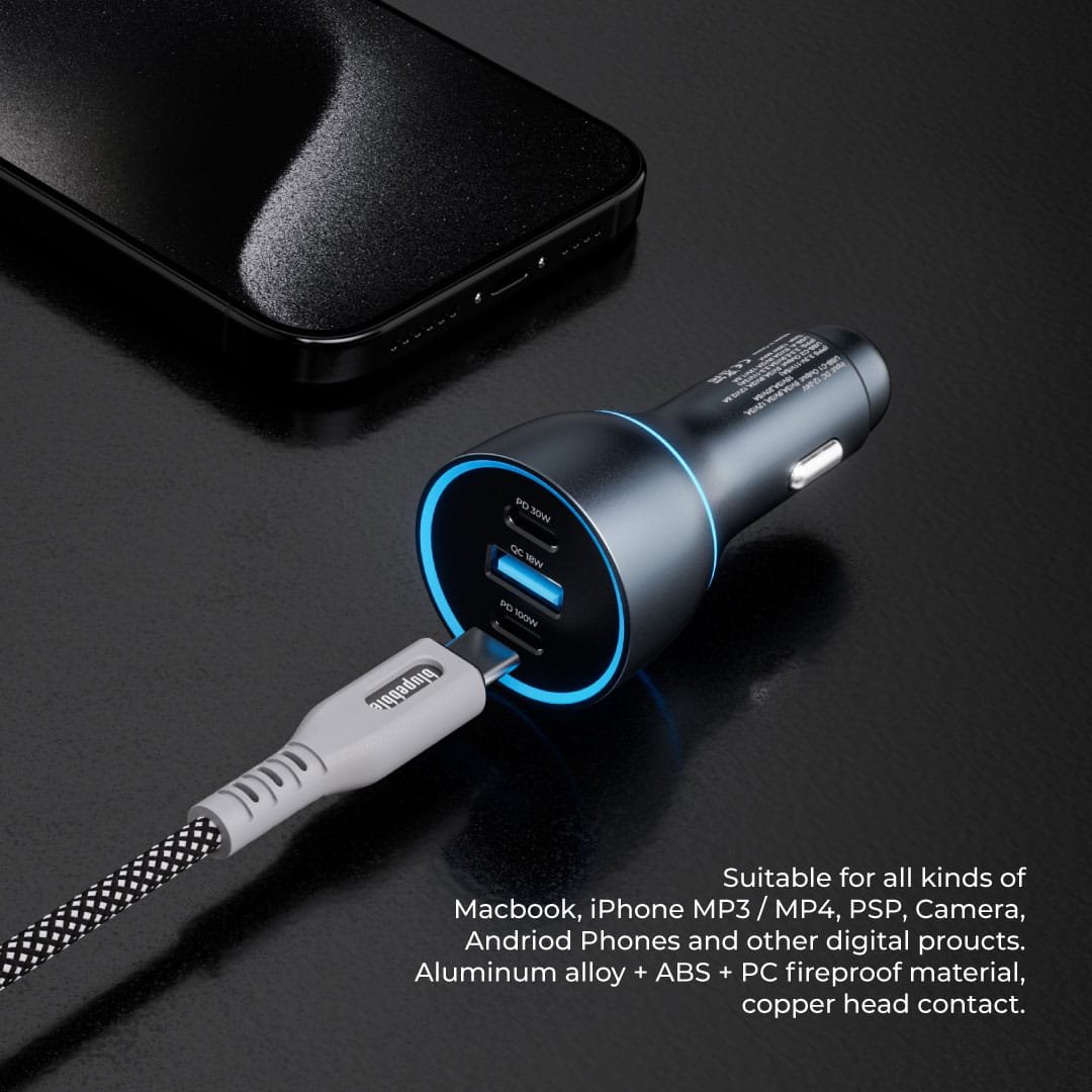 • Fast charging 130W Aluminum Car Charger 2 USB-C Ports 100W | 30W & QC18W